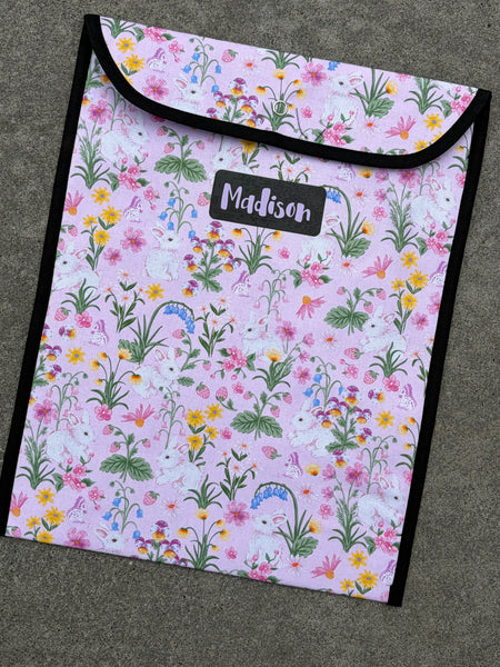 Built to withstand the toughest of adventures (in the school bag!). The bag is made from designer cotton on the outside and lined with water resistant fabric on the inside.